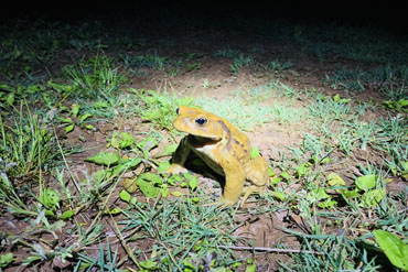 力強い前足で自信たっぷりに構えるその姿に思わず敬意を払ってしまう大きなカエル。
